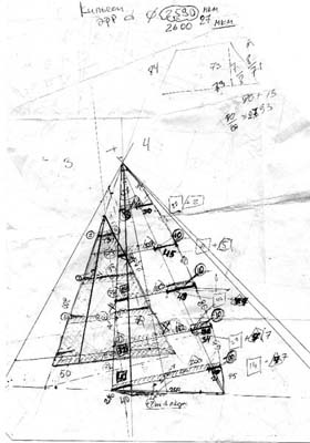 Чертеж паруса для байдарки. Авторы - Петрунев и Каминский. Впоследствии был изготовлен, установлен, утоплен. Датируется 85-86 гг. прошлого века.