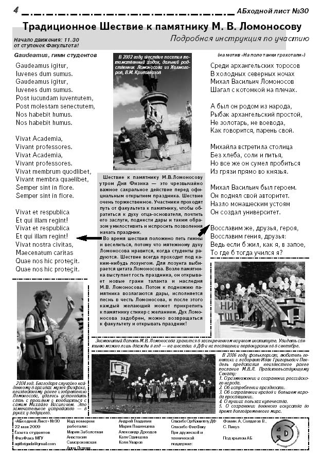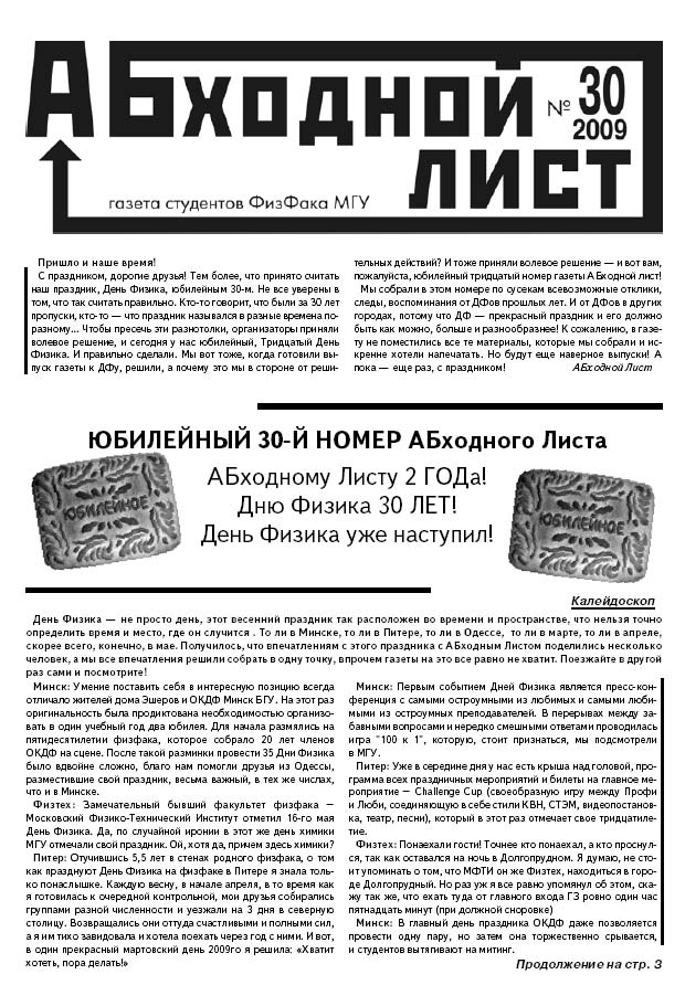 Юбилейный выпуск Абходного листа